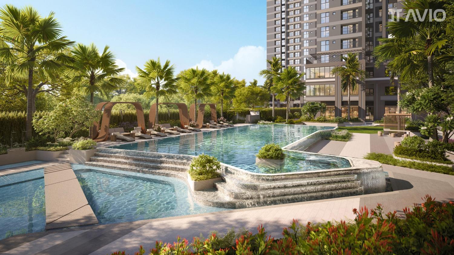 Hồ tràn nghệ thuật Hồ bơi người lớn (Hồ bơi vô cực) Hồ bơi trẻ em Dòng sông lười và Thác nước Khu tương tác cho trẻ em |